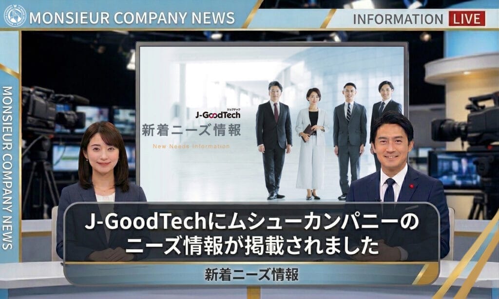 日本の中小企業と国内大手企業・海外企業をつなぐビジネスマッチングサイト J-GoodTech(ジェグテック)に、ムシューカンパニーのニーズ情報が掲載されました